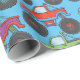 A fun, customisable monster truck wrapping paper for a birthday party or room decorations.