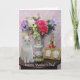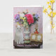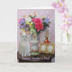 Customisable card with Missy by flowers in a pretty vase, a figurine, a gold picture frame, and a music box. You can customise the text, change the fonts, font sizes and colours. You can add a background colour inside.