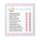A new take on a familiar baby shower game this cute pad of game sheets has 12 standard questions PLUS you have the ability to change one or all of the questions to customise it for your particular baby shower.