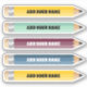 Playful and charming sticker for teachers and students. Cute customisable pencil name sticker in different colours with a cute font. It is the perfect Back to School gift, and you can personalise it with a name for a truly special touch. Also, it's a thoughtful gift for Teacher Appreciation Day. Yellow pencil, aqua pencil, rust / red pencil, blue pencil.