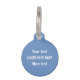 I looked through a lot of pet stores and web sites then I saw Zazzle and a tag with guitars in the background so we added his name and photo o nether front and our phone numbers on the back. It was beautiful and unique just perfect