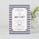 Customise this fully customisable stylish modern Nautical Rehearsal Dinner Invitation. Blue and white striped design, set as a template for an easy customisation. All the elements are flexible and can be moved around, resized or removed. This design is a version with only names and not formal names.
