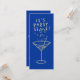 Customise these party invitations any way you like! On one side, a hand drawn martini glass and the words IT'S PARTY TIME! Background is blue (customisable). On the other side, text (customisable) gives details of the party. Background is blue (customisable). It's customisable and great for New Year's Eve parties or any other fun event!