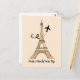 Customise this chic minimalist Paris vacation postcard for your family reunion or girls trip. An artistic drawing of the Eiffel tower with a plane flying behind it to symbolise your aeroplane travel. Cute custom cursive script on this keepsake.