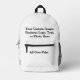 Create Your Own Custom Personalised Backpack. Customise and personalise to create your own personalised Backpack that is unique and one of a kind. Add your photo, images, text, design or business logo for the perfect travel, back to school, gym or work bag or laptop backpack and pack everything you need into this sturdy backpack and bring it along as an overnight bag or travel backpack. Featured is all over print bag that allows you to create with any colours - all over print backpack!