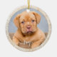 Customisable Pet Dog Photo Gold Glitter on White Ceramic Ornament