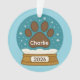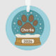 Celebrate your furry friend this holiday season with our adorable customisable pet paw print snow globe ornament. Featuring a bold brown paw print surrounded by snowflakes and stars, this festive design lets you add your pet’s name and year to the golden base for a truly personal touch. Perfect for dog lovers, cat lovers, or any pet parent looking to make the holidays extra special. This ornament makes a thoughtful keepsake or heartfelt gift for friends and family.