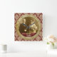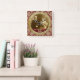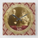 A beautiful clock with antique gold and red damask background, red and gold ribbon trim and vintage paper textures. Replace the sample sepia photograph with your own. Also looks great with black-and-white photos. Makes the perfect gift for a wedding anniversary. (IMPORTANT NOTE: All the design elements are digital and printed flat on a smooth surface.)