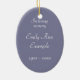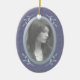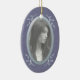 Dark Blue with Silver Leaves Oval Photo Ornament Create a cherished memory of someone special with a customisable photo ornament. Designed especially for remembrance and memorial keepsakes, this ornament has a muted blue background with a silver look photo frame to which you can add a photo of your loved one. A silver leaf detail surrounds the frame. On the reverse is the text 'In loving memory' and customisable text boxes to add a name and dates. A lovely way to remember and celebrate a life. Available in a range of soft and classic shades for male or female memorials.