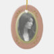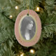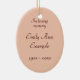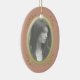 Dark Peach with Gold Leaves Oval Photo Ornament Create a cherished memory of someone special with a customisable photo ornament. Designed especially for remembrance and memorial keepsakes, this ornament has a dark peach background with a gold look photo frame to which you can add a photo of your loved one. A golden leaf detail surrounds the frame. On the reverse is the text 'In loving memory' and customisable text boxes to add a name and dates. A lovely way to remember and celebrate a life. Available in a range of soft and classic shades for male or female memorials.
