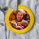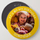 Customisable photo, name and age - IT'S MY BIRTHDAY - button. Yellow frame with white font.