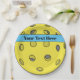Add your custom text, background and banner colour to this pickleball party paper plate created by artist and surface designer Deb Jeffrey.