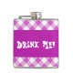 Customisable Pink Gingham Flask. Now Reads: Drink Me! Makes a great gift!