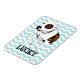 This modern refrigerator magnet design features a cartoon illustration of a Pit Bull Terrier with a teal and white chevron pattern background. Customisable text for your pet's name!