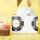 Black & white poker chips with faux gold accent graphic | gold colour text against white background | fully customisable text
