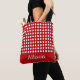 A customisable tote bag with red and white polka dots. This design was created by Debbie Quick from Debs Creative Designs: www.debscreativedesigns.com