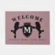 Cute door mat featuring an illustration of Poodle silhouette (Continental cut). Customisable background colour and text. Perfect gift for the dog lover or Poodle owner.