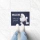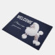 Cute doormat featuring an illustration of a Poodle. Customisable background colour and texts. Perfect gift for the dog lover or Poodle owner.