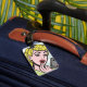 The Customisable Retro Comic Book Cutie Luggage Tag design features a lovely teeny-bopper holding a compact and applying red lipstick. The girl is on a robin's egg blue and white polka dot background. The opposite side of the tag is robin's egg blue and white polka dot and is all ready for customising. Simply click on the "Customise It" icon and replace the existing text with your own. This whimsical pop art luggage tag is sure to bring a smile to your lips.