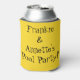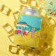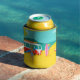 Every day can be a day at the beach with this Customisable Retro Surfer Couple Can Cooler. The 1960's style, minimalist art design features a fun-loving, sun worshiping, thrill seeking couple all ready to catch a wave. The setting is a tropical, island oasis with a beach of golden sand, swaying, green palm trees, a sparkling, peacock blue ocean, and an aqua sky. In the distance, we can see a teal volcanic island, which is dormant for the time being. Back on the beach, we can't help noticing the sweet ride that brought our couple to their dream destination. It's a mid century modern, red and white van with an orange and yellow surfboard strapped to the top. Though we can't be sure, it's fair to assume that the inside of the van features groovy, shag carpeting and the smell of incense! Surfer Dude and Beach Babe have matching sun-kissed tans, sun-bleached hair, and blue, tiki patterned swimsuits. Surfer Dude is holding a blue surfboard. Beach Babe is standing beside her two-toned, pink surfboard. Lying nearby, there is a red and white beach ball, waiting to fulfil its summer destiny. The opposite side of this can cooler is yellow with plenty of room for personalising! Catch some waves and share some love with this kitschy summer design!