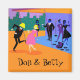This Customisable Retro Urban Rooftop Party Magnet is intoxicating in its detail. The cartoon design features the type of wildly sophisticated cocktail party that is normally only seen in movies from the 1960s. There is a lot for the partygoers to take in. From the comfort of a penthouse apartment, guests are enjoying the view and the ambiance. The lighting sets the mood and we are able to see the darkened silhouettes of an attractive couple dancing the cha-cha. On the floor, there is a purple, portable, record player at the feet of the dancing couple. Several albums have been scattered nearby. Even with the dimmed lighting that makes practically everything in the room appear in shades of purple, blue and black, we can tell that everyone is dressed to the nines. Behind the dancing, indoor couple, there is a gentleman in a black suit holding a martini glass. He is talking to a dark haired beauty who is standing near one of the floor to ceiling glass walls. From a lampstand, a single bulb is casting a romantic glow on the scene. The only thing missing is the lampshade. Hmm... Where is the shade? It's on the head of a tipsy man who has taken the party outside to the orange rooftop. He's clearly got some fine dance moves and he isn't afraid to show them to the world! His companion is a shapely, blonde woman in a bright pink dress. Her back is arched as she throws back her martini in an uninhibited fashion. Beyond the party, there is a breathtaking teal skyline, complete with skyscrapers and a purple sky. If this is how the other half lives, sign me up! Personalise this magnet for a one of a kind gift.