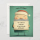 This green Christmas postcard showcases a cute illustration of the Santa holding a large banner with customisable message.
