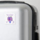 A pretty Save the Date fridge magnet for you to personalise, with a bouquet of pink, blue and purple flowers in vase with a pattern of hearts, from a handpainted paper collage by Judy Adamson