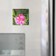 A pretty 'Save the Date' fridge magnet for you to personalise, with a bright pink roses, from a photograph by Judy Adamson