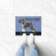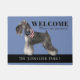 Cute doormat featuring an illustration of a Schnauzer. Customisable background colour and texts. Perfect gift for the dog lover or Schnauzer owner.