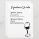 Elevate your wedding bar with this chic black-and-white Signature Drinks Menu card. Perfect for modern weddings, this design features a sleek wine glass illustration and customisable drink options, making it easy to tailor the card to your special day. Whether you’re planning an elegant reception or a laid-back cocktail hour, this minimalistic design will seamlessly blend with any theme. Customise the bride and groom's drink choices to match your style—cheers to creating an unforgettable celebration! Ideal for both contemporary and timeless wedding aesthetics.
