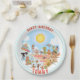 A spectacular cartoon of Southern California – showcasing Los Angeles, Anaheim, Palm Springs and San Diego. This bright and charming scene has it all – a surfer hangs ten while a mermaid lounges on a rock, a killer whale leaps out of the water, a muscular beach couple both flex to impress, T Rex roars a challenge and a tank commander and jet are ready to defend...
