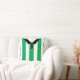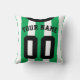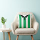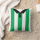 Easy to edit football shirt / soccer / rugby style sports jersey design throw pillow. This design has green vertical stripes, with black trim and buttoned collar design.