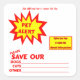 This emergency pet alert square sticker has bright yellow and red text that reads: "Pet Alert - Please save our Dogs, Cats, Others". There is plenty of space to write in your pet information. Additional features of this design are customisable text and customisable images which makes this an ideal design for a vet's office, a pet shop or an animal shelter. You can remove the customisable text and image if these items are not needed. If you need assistance personalising these stickers please feel free to contact this store and someone will contact you within 2 business days.