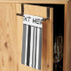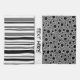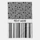 Vertical stripes in black, grey, and white, black circles with white outlines on a black background. A white horizontal strip is in the middle and can be personalised with the text of your choice.