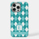 Customisable Teal Blue Green White Argyle Pattern iPhone Case
