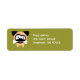 This return address label features our Tugg the pug with his trusty bone. You can customise the label to match your stationery: Use the template to add your name and address. In addition, the background colour of the label itself can be adjusted to match your envelope. (Click on the eye dropper for more custom colours. The default background colour is Boodapug (sage) green #999933.)