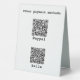 Customise this table tent sign with three lines of customisable text and one custom QR code on the front and two more payment options with two additional QR codes on the back.