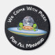 It’s not about the sauce, it’s about the saucer. These intergalactic space travelers come to our planet with a gift of peace, in this case pizza, for all mankind. This UFO has two little green men as extraterrestrial astronauts and a delicious pizza pie against a starry sky background. This isn’t science, it’s science fiction! What’s more, the interstellar greeting, “We come with pizza for all mankind”, is easily personalised with a custom caption or motto, perhaps to support your own fun party celebration or pizza delivery business.