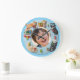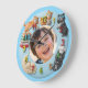 This adorable and vibrant customisable wall clock is the perfect addition to any child's bedroom or playroom. The clock features a light blue circular frame adorned with charming, funny 3D-style cartoon cats representing each hour. From a sleepy cat curled on the moon for 7, to a playful cat with a yarn ball for 12, and a chef cat proudly holding a fish for 4, these cheerful characters make learning to tell time fun! The large, colourful numbers (1-12) are easy to read. Best of all, the centre of the clock can be personalised with a photo of your child and their name (like "Andy" in the example). This unique timepiece serves as both functional decor and a cherished keepsake, encouraging punctuality with a smile.