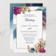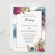 Elegant and striking Wedding invitation with beautiful teal, purple, fuchsia and blue watercolor inks with gold elements flowing behind your details, as well as exquisite corner floral embellishments framing invitation. This invitation is fully customisable, meaning you can change all text font style, size and position to your liking by clicking on blue button at the end of template section, this will bring you to the editor tool screen, where by clicking on text you can drag and move text anywhere you like or choose from a variety of font styles or size and make this invite your very own! Watercolor stains, Foliage and flowers in a creative blend of purple, fuchsia, magenta, teal, turquoise, blue, navy, mustard, golden yellows and green hues. Part of our "Mystic Garden" Collection with a variety of coordinating products available. Visit the entire collection at: https://www.zazzle.com/collections/mystic_garden_celestial_collection-119823869554047930