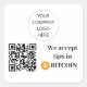 Customisable We Accept Tips in Bitcoin sticker for small businesses. Customise the company logo and Bitcoin wallet QR code with your own.