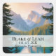 This customisable sticker features a serene, scenic landscape with mountains, trees, and a tranquil lake, creating a perfect backdrop for your event details. The sticker’s design includes customisable text for names, date, and location, framed in a soft, transparent overlay across the middle of the image. The elegant, timeless font style makes it ideal for wedding favours, invitations, or keepsakes, capturing the essence of a rustic or outdoor-themed celebration. It’s versatile and can be used on envelopes, gift bags, and other items to add a personal touch to your special day.