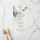 This wonderful template allows you to fill in the details - just replace our text with yours. The design features white flowers for a white wedding reception dinner menu.