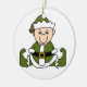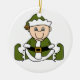 A baby dressed in a green elf suit on an ornament you can easily customise with your own text before ordering.