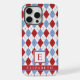 Customisable White Blue Red Argyle Pattern iPhone Case