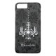This elegant black iPhone case is decorated with a white crystal chandelier on a classy tone on tone damask pattern. This case is easy to personalise with a your name or monogram.