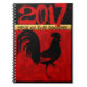Modern and traditional illustration with a black silhouette of a Rooster and ornate red lettering as background + Year of the Rooster onto a small golden band. Design on spiral notebook. Available with another design with the same lettering. Matching greeting card, postage, red envelopes and lot of other products for New Year and Birthday (people born in Rooster year)... -------- "The Rooster (simplified Chinese: 鸡; traditional Chinese: 雞/鷄) is one of the 12-year cycle of animals which appear in the Chinese zodiac related to the Chinese calendar. The Year of the Rooster is represented by the Earthly Branch character 酉. The name is also translated into English as Chicken. Rooster is the only bird included in the Chinese zodiac. People born within these date ranges can be said to have been born in the "Year of the Rooster", while also bearing the following elemental sign: