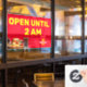 I made this Customise Burger Restaurant Logo Open Until 2AM Window Cling in two colour schemes. I did the same with the posters and banners.
