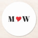 Customise Couple initials A Loves B red heart Round Paper Coaster, Wedding, Valentine's Day, anniversary