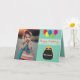 Happy birthday with a lucky owl card, colourful balloons, red, yellow, blue, green, pink, purple, customise happy birthday card. This product is only intended to be purchased once sample photos are replaced with your own images.